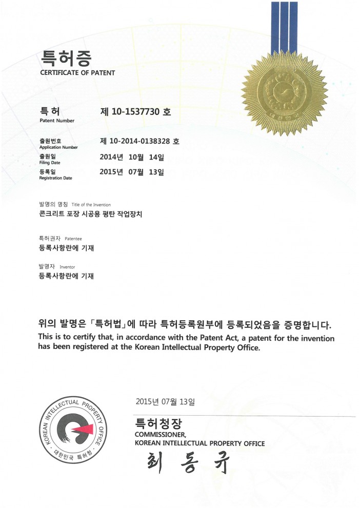특허제10-1537730호 BLMC 평탄작업장치 페이지 정보 글쓴이 관리자 조회 558 등록일 time18-01-12 15:51 댓글 0건 관련링크 이전글 다음글 목록 답변 본문 특허제10-1537730호 BLMC 평탄작업장치 이전글 다음글 목록 답변