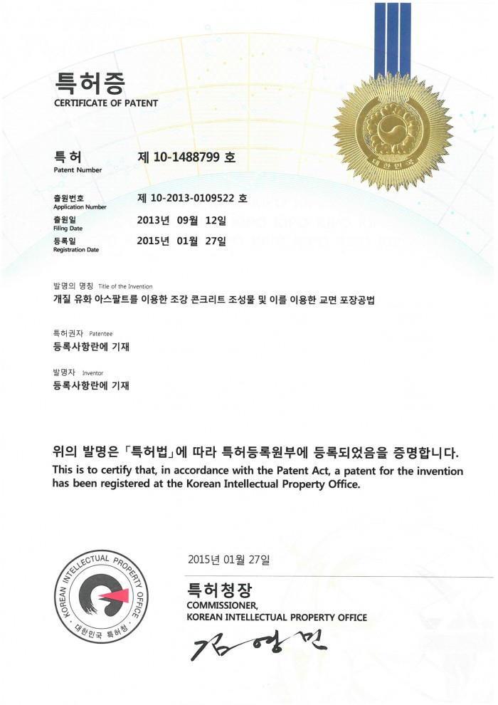 특허증 제10-1488799호 개질 유화 아스팔트를 이용한 조강 콘크리트 조성물 페이지 정보 글쓴이 관리자 조회 571 등록일 time18-01-12 15:54 댓글 0건 관련링크 이전글 다음글 목록 답변 본문 특허증 제10-1488799호 개질 유화 아스팔트를 이용한 조강 콘크리트 조성물 이전글 다음글 목록 답변