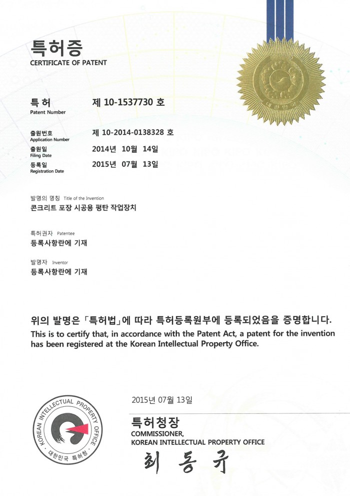 특허증 제10-1537730호 BLMC 평탄작업장치 페이지 정보 글쓴이 관리자 조회 584 등록일 time18-01-12 15:55 댓글 0건 관련링크 이전글 다음글 목록 답변 본문 특허증 제10-1537730호 BLMC 평탄작업장치 이전글 다음글 목록 답변